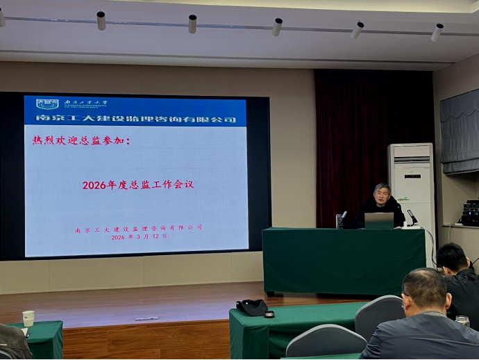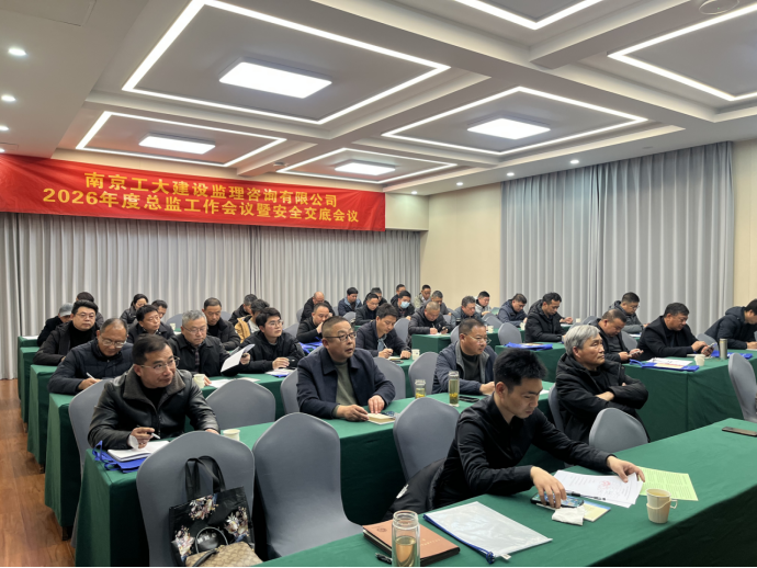 为筑牢年度安全生产防线,压实监理安全责任,确保全年工程建设平稳开局,2026年3月12日下午在南京市京西宾馆第一会议室,南京工大监理咨询有限公司召开2026年度总监工作会议暨安全交底会议。公司领导班子、各部门负责人、一线项目总监共计50余人参加会议。